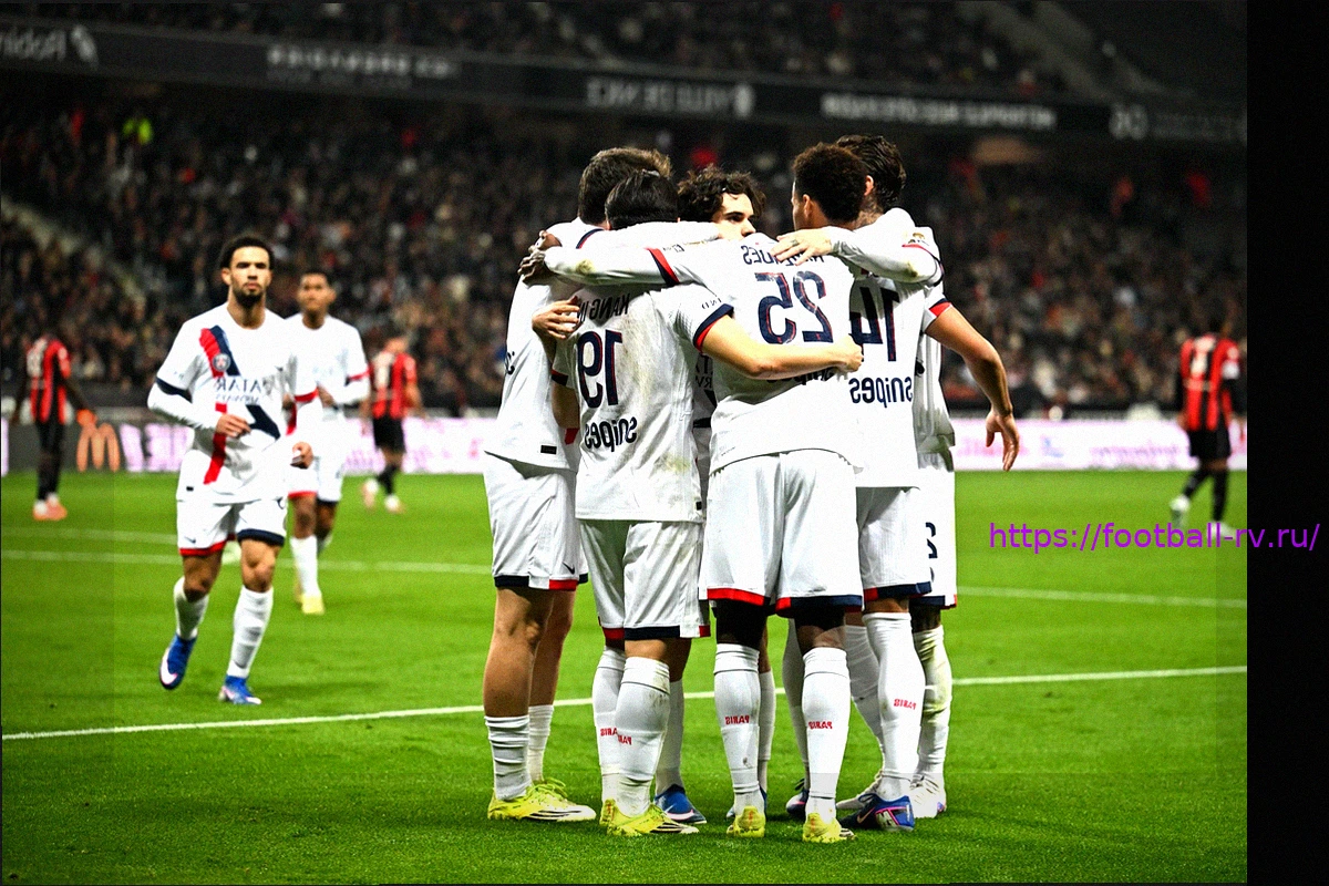 В рамках решающего матча чемпионата Лиги 1, футбольный клуб «Пари Сен-Жермен» нанёс крупное поражение команде «Олимпик Джимнаст Клуб Ницца». Парижане, запечатлённые здесь на стадионе «Альянц Ривьера» 21 марта 2026 года, продемонстрировали убедительную игру, что позволило им вернуть себе заветное первое место в турнирной таблице.