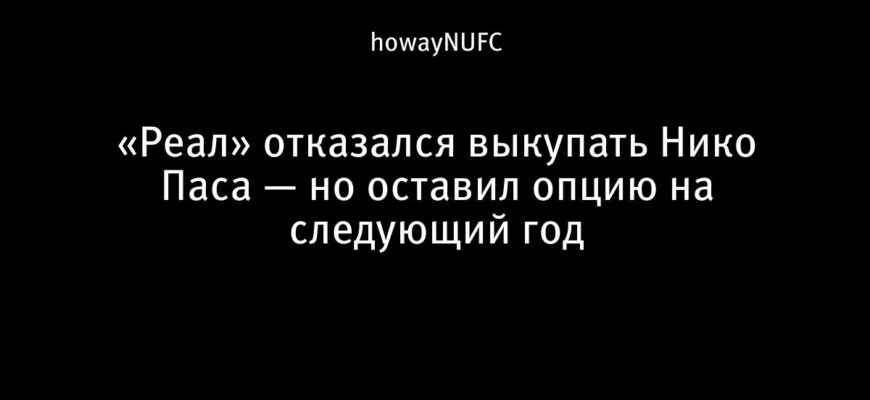 Мадридский «Реал» проинформировал итальянский клуб «Комо» о своем намерении не использовать предусмотренную контрактом опцию обратного выкупа полузащитника Нико Паса в грядущее летнее трансферное окно. Об этом сообщает известный инсайдер Фабрицио Романо.