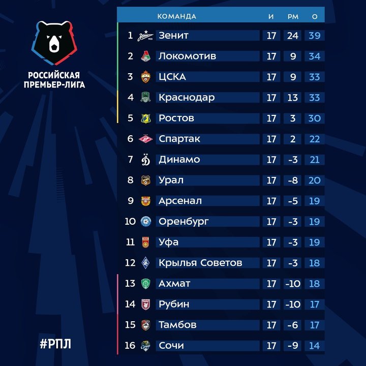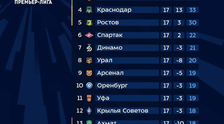 Эти комментарии были сделаны на бизнес-завтраке в рамках Winline Зимнего Кубка РПЛ. После 18 туров чемпионата России лидирует «Краснодар» с 39 очками, столько же у «Зенита» на втором месте, а «Спартак» замыкает тройку лидеров с 37 очками.