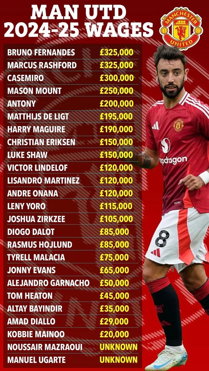 Фонд заработной платы «Манчестер Юнайтед» по-настоящему впечатляет: «Красные дьяволы» еженедельно тратят более 3 миллионов фунтов стерлингов на зарплаты игроков основного состава. В настоящее время годовой фонд оплаты труда клуба составляет колоссальные 158,7 миллиона фунтов стерлингов. Несмотря на эту внушительную сумму, она существенно ниже, чем была в прошлом сезоне.